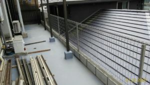 Home › blog › 張り出し床板続き(*’▽’) 2020-01-22 張り出し床板続き(*’▽’) 床板補修工事の続きです。かけてしまったところをセメント補修して、その上からあご下、裏手50㎝ほどFRP防水でくるみました。これであご下ののコンクリートの剥落は防げます。続いてブロックを1段ついて、フェンスを建てました。後は倉庫の復旧で完了です。 張り出し床板の補修工事お受けしました(*’▽’) サイクルポート施工しました(*’▽’)